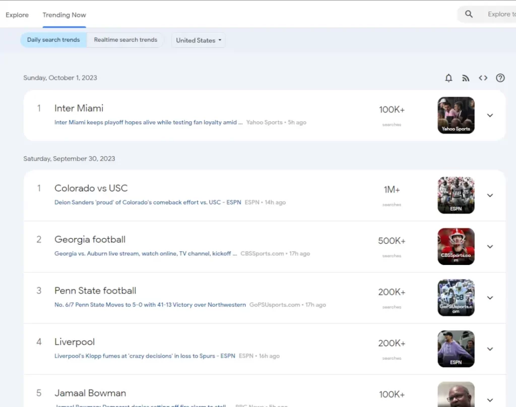Now you can find the top queries sorted by volume. You can choose ‘Daily search trends’ for that purpose. The queries will be listed according to their volume, with high volume at the top and low volume at the bottom.