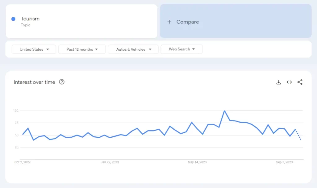 Now you want to know at which time of year you should search for information about tourism so that you can make your selling strategy more effective.