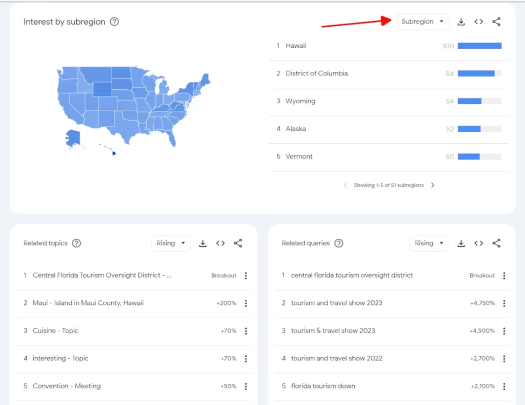 Google Trends provides data at the city level. By utilizing this data, we can find search terms that are popular in our area.