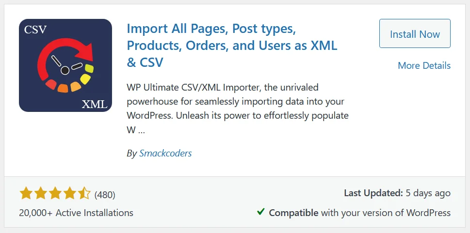 Import All Pages, Post types, Products, Orders, and Users as XML & CSV is WP Ultimate CSV/XML Importer plugin. It is used to import data into your WordPress.
