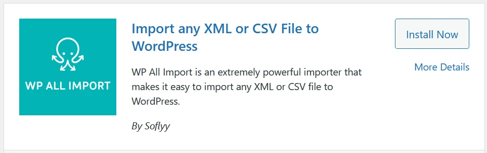 Import any XML or CSV File to WordPress is a powerful plugin that imports any XML or CSV file to WordPress. WP All Import makes it easy to import files.
