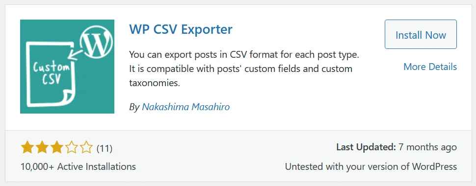 Using WP CSV Exporter, you can export posts in CSV format for each post type. This plugin is compatible with posts’ custom fields and custom taxonomies.